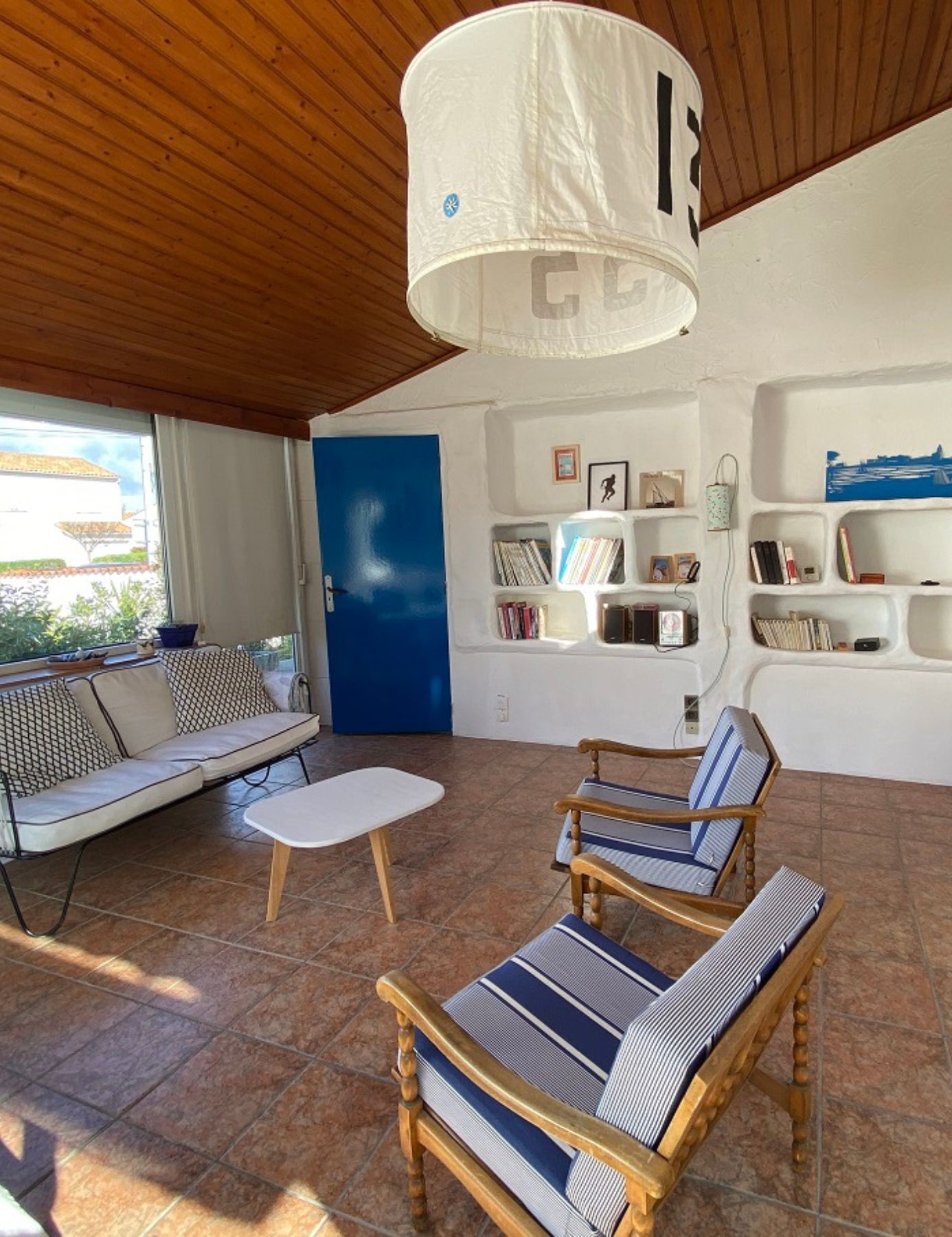 Avec ses airs de bord de mer et son look vintage « Ibiza », le 82 plage est une maison de plain-pied de 120 m² sur un terrain clos, à 800m de la plage de Pontaillac, dans un quartier calme et à proximité de tous les services.